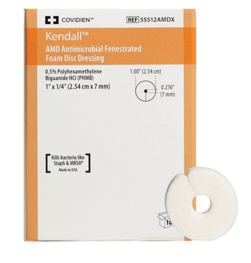 Kendall™ AMD Antimicrobial Foam Dressings provide a moist wound-healing environment for a wide variety of wounds. The dressing contains the antimicrobial agent PHMB that provides a barrier to bacteria penetration through the dressing and prevents colonization and proliferation of bacteria within the dressing for up to 7 days.