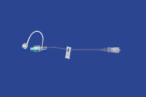 - Allows extension set to attach to catheter in any position while leaving the suture wings flat against the patient
